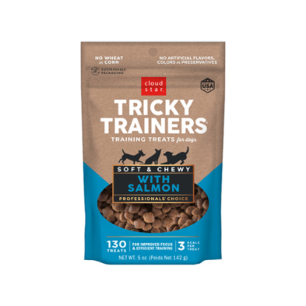 Cloud Star Tricky Trainers has been the choice of professional trainers since 1999, with irresistible flavor to keep dogs’ attention, low calories, and deliciously soft and chewy texture. Each bite-size treat is packed with wholesome ingredients like real salmon, and no corn, wheat, artificial colors or flavors, so you can feel good about rewarding their good behavior - while training or any time!