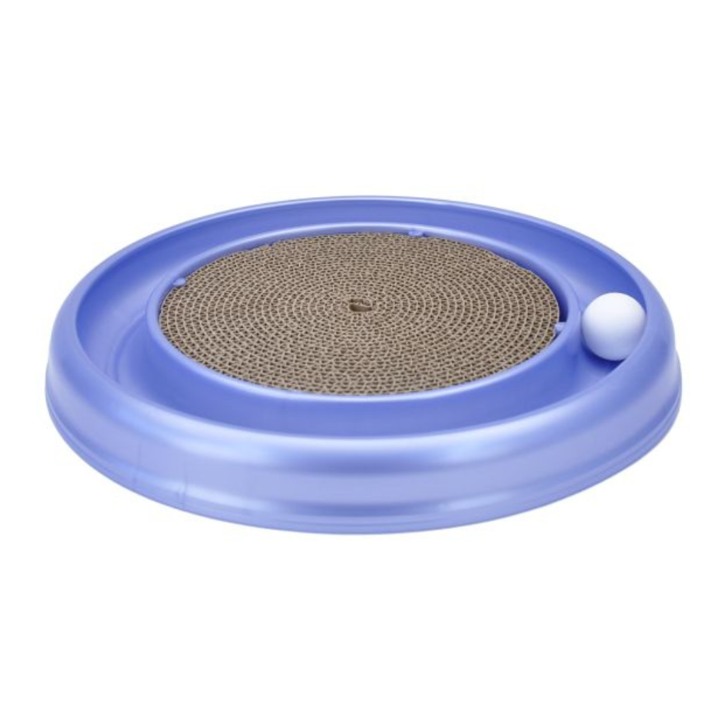 Give your feline friend triple the fun with the Turbo Scratcher® Cat Toy – the ultimate playtime delight for your cat. This innovative toy combines three engaging elements in one package. The rounded race track provides endless entertainment as your cat bats at the ball, setting it spinning around the track. It's a captivating way to keep your cat active and mentally engaged. But that's not all! The large scratchpad surrounding the track serves as a dual-purpose delight. It satisfies your cat's natural scratching instincts, keeping them away from your furniture, and also serves as a comfortable resting spot. To extend the life of this fantastic toy, replacement pads and balls are available, ensuring that your cat can enjoy it for a long time to come. For an extra boost of energy and excitement, sprinkle the included catnip onto the scratchpad, enhancing your cat's playtime experience. The Turbo Scratcher® Cat Toy is the ultimate combination of fun, exercise, and satisfaction for your beloved feline companion.