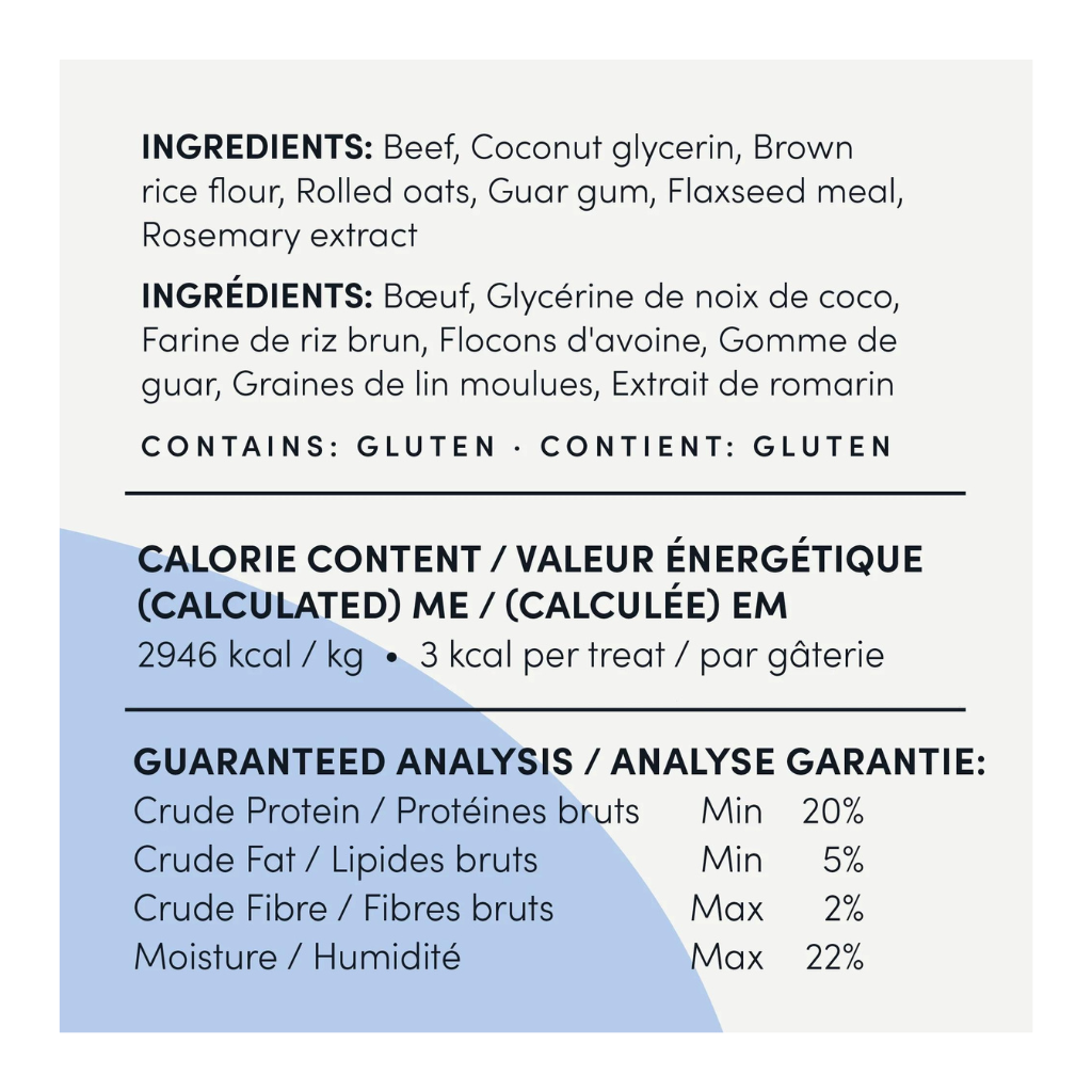 Each soft and chewy treat contains all natural ingredients starting with North American Beef making it the perfect high protein snack for dogs of all ages and sizes.
