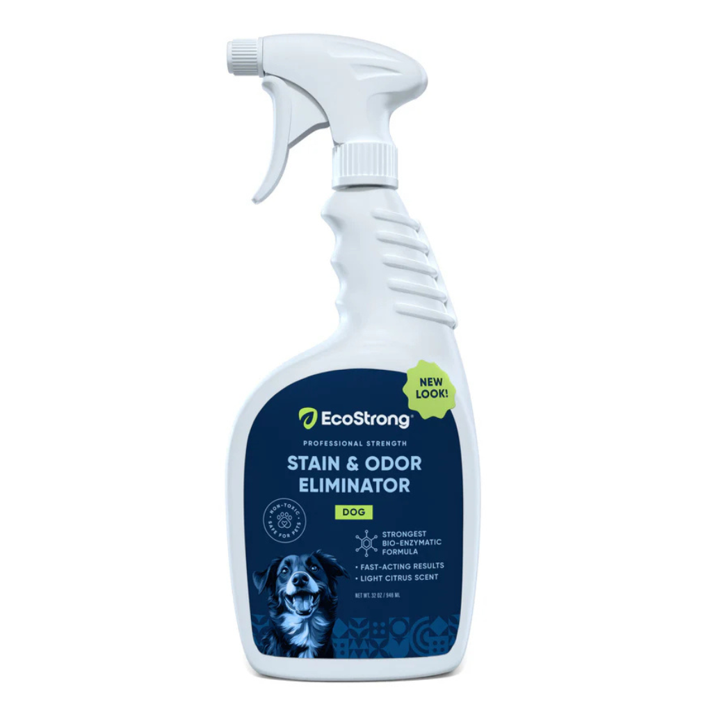 Instantly erase dog odors and remove deep stains. EcoStrong’s Dog Stain and Odor Eliminator is an bio-enzymatic multipurpose cleaner. Dog stains and odors don’t stand a chance against the billions of all-natural enzyme-producing bacteria. Use to clean dog urine or feces stains on just about any household surface, and the only thing left behind will be a pleasant citrus scent.