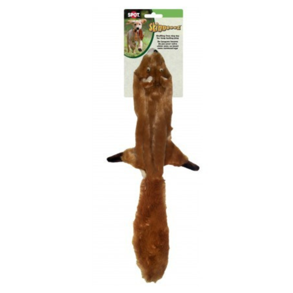 Skinneeez stuffing free dog toy satisfies a dog’s natural hunting instinct. With no stuffing to rip out, they offer long lasting play. The realistic Squirrel design provides a flip flopping action dogs love.