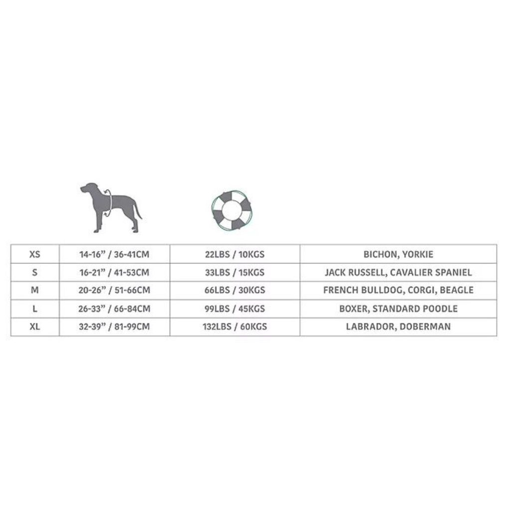 Please refer to GF Pet's Life Vest size chart. This product uses unique sizing that differs from the standard GF Pet apparel sizing.