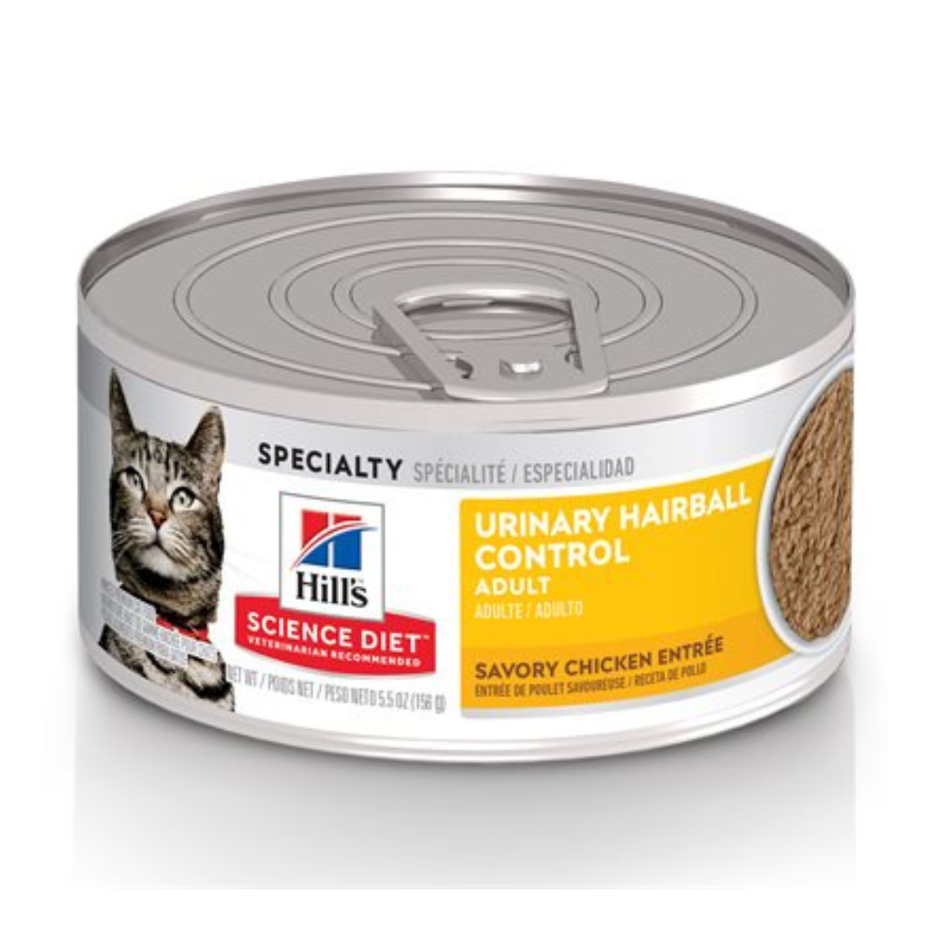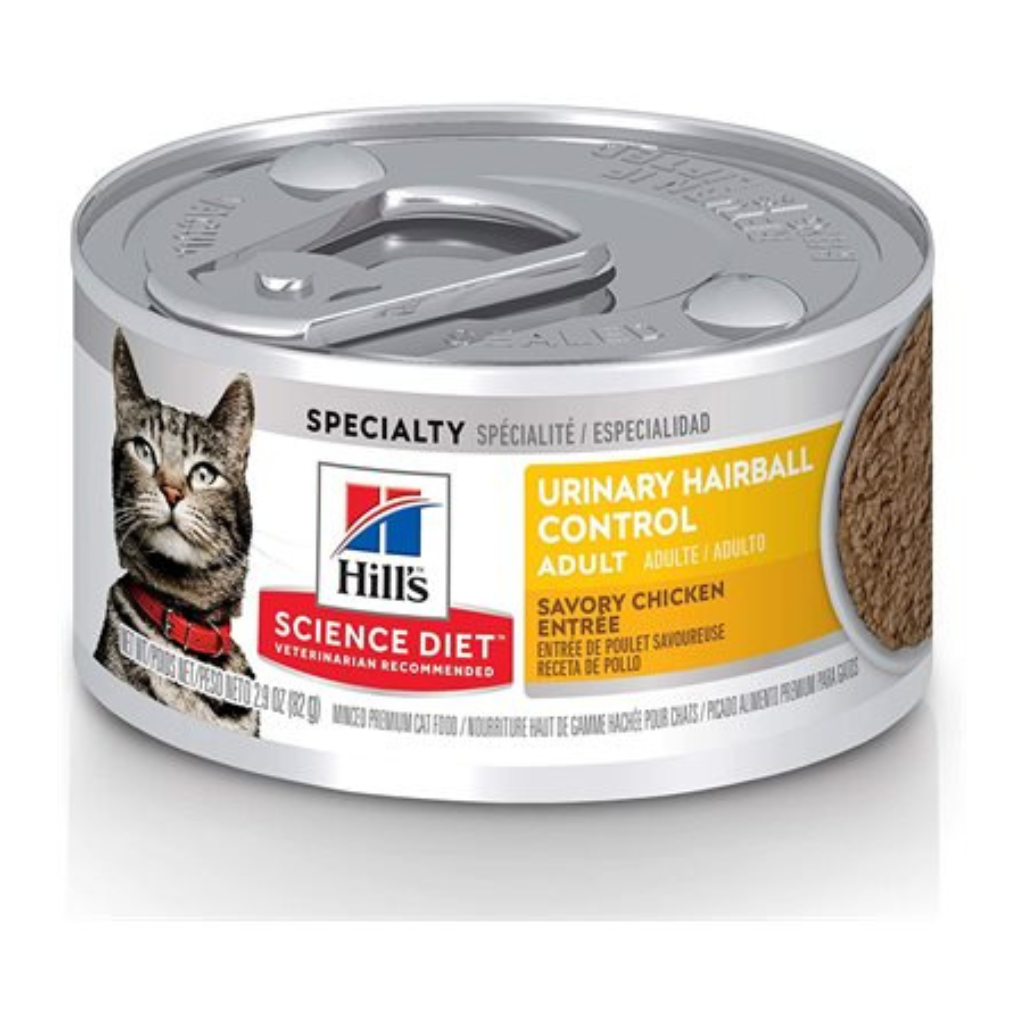 Hill's Science Diet Adult Urinary Hairball Control cat food is formulated to meet the nutritional levels established by the AAFCO Cat Food Nutrient Profiles for maintenance of adult cats.