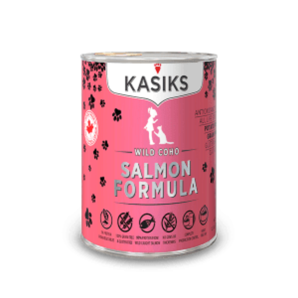 Keep things simple, delicious, and nutritious with the KASIKS Wild Caught Coho Salmon Formula Canned Cat Food. From the family-owned and operated company, the limited-ingredient recipe is specially crafted to nourish your cat. Starting with wild-caught salmon to appeal to his protein-loving appetite, the addition of coconut, kale, and berries offer vital antioxidants. The result is complete and balanced diet full of vitamins and minerals that is good for all life stages, and it’s totally free of grain, gluten, and potato.