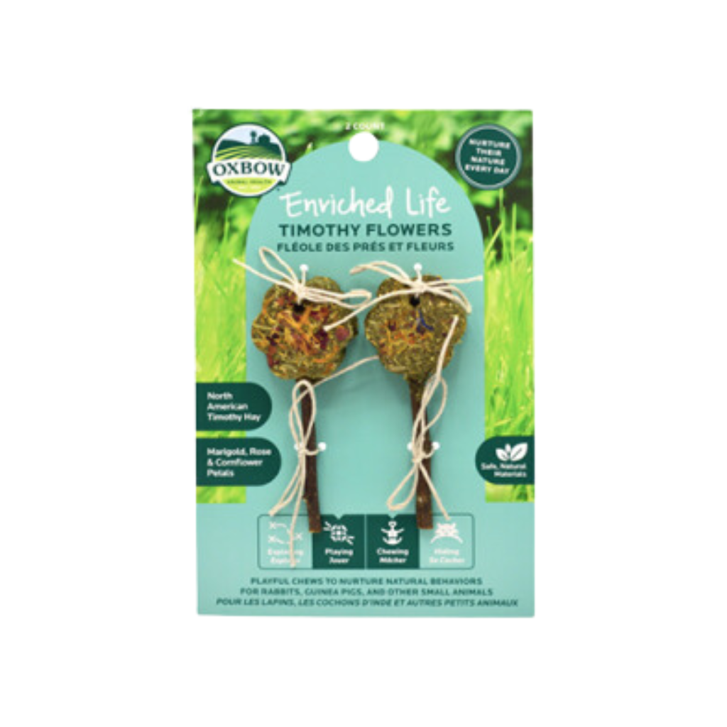 Fun shape made with high fiber Timothy hay. Enticing marigold, rose, and cornflower petals encourage interaction. Encourages mental and physical enrichment. Great for strengthening the bond with your pet. Supports your pet's instinctual chewing and playing behaviors. Offer different chews and toys on a regular basis to keep your pet's life enriched.
