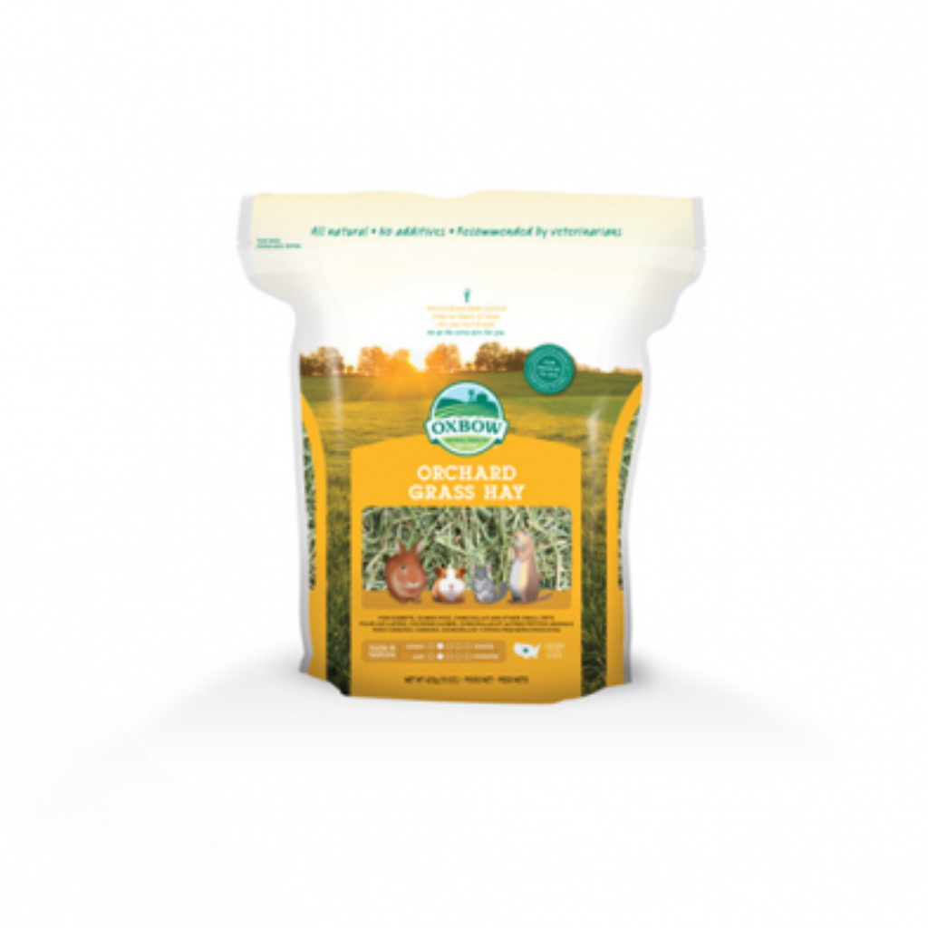 Aromatic, high-fiber Orchard Grass Hay from Oxbow is hand-selected to deliver a sweet smell and soft texture that rabbits, guinea pigs, chinchillas, and other small pets love. The fragrant aroma of Orchard Grass Hay will stimulate your pet’s appetite and encourage consumption. Your pet should have unlimited grass hay every day.