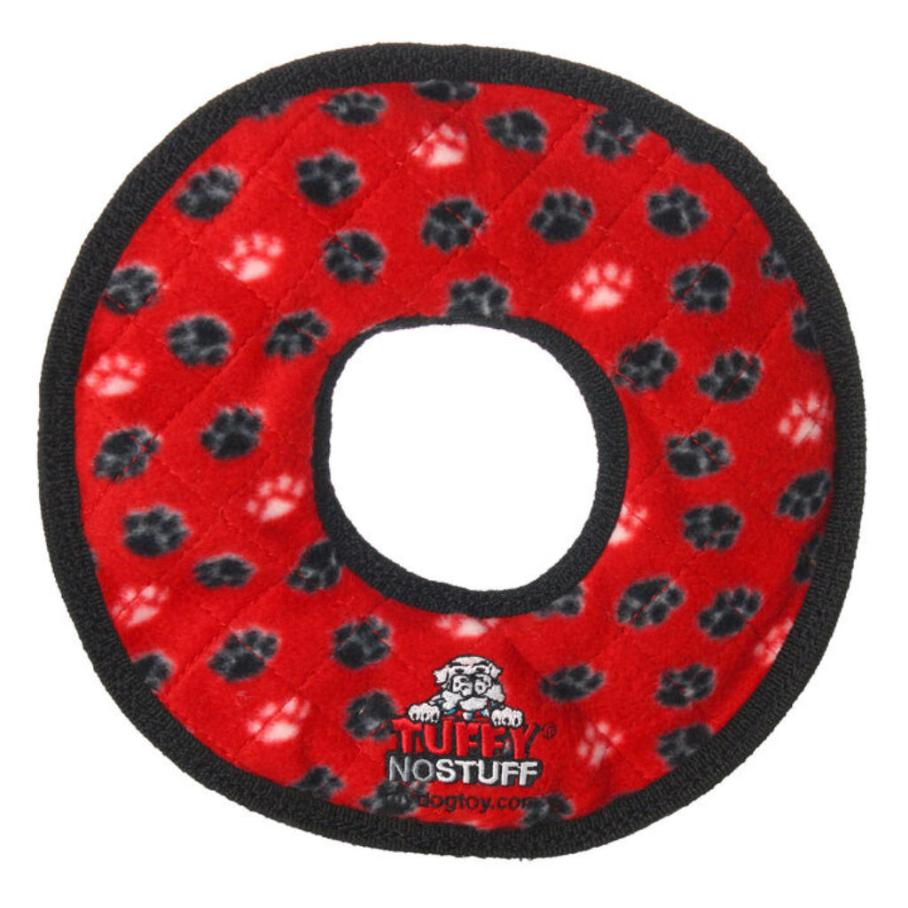 "TUFF" with NO STUFF! Extremely Durable Dog toy with no "Stuff" in the center! Extremely Durable Ultimate Dog Toy with the same great Ultimate Construction but with NO "Stuffing" in the center! Great for interactive play with one or multiple dogs. It can be used as a Frisbee or a tug toy on land or in the water. Great for flyball training! Easy to toss and Great For Indoors! Washable! And Floats!! The soft edges won't hurt gums. NO POLY STUFFING.